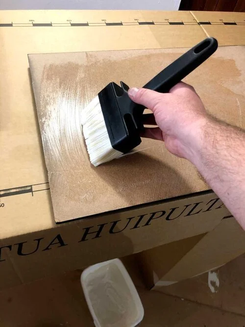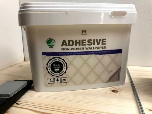 Jag använde mig av ADHESIVE tapetklister som hade blivit över från ett tapetserings arbete.