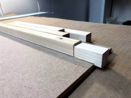 För att underlätta arbetet så gjorde jag små klossar som jag använde för att få alla ribborna fastlimmade på sina rätta platser och de blev alla precis lika