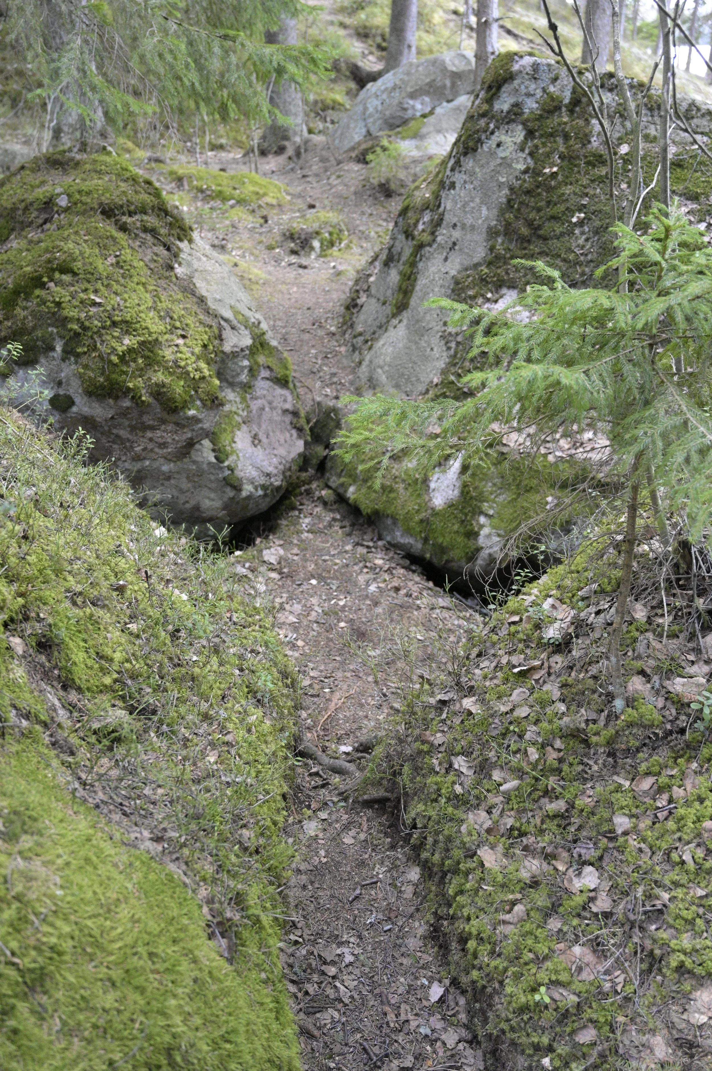 Vi mötte igen skog som var förstörd av skogstraktor vissa ställen. Då vi hade gått ca. halva sjön så tyckte vi att det blev rätt så jobbigt att gå längs stranden då det var rätt vildvuxet och svår terräng att gå i så vi gick rakt upp mot norr så vi kom till skogsstigen.